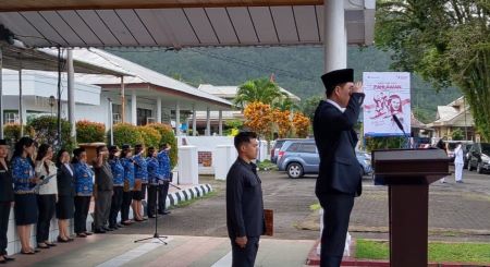 Kesempatan itu Bupati membacakan sambutan Menteri Sosial RI. Dia mengajak seluruh bangsa Indonesia untuk menundukkan kepala sebagai bentuk penghormatan atas jasa para pahlawan yang telah berkorban jiwa dan raga demi kemerdekaan bangsa.